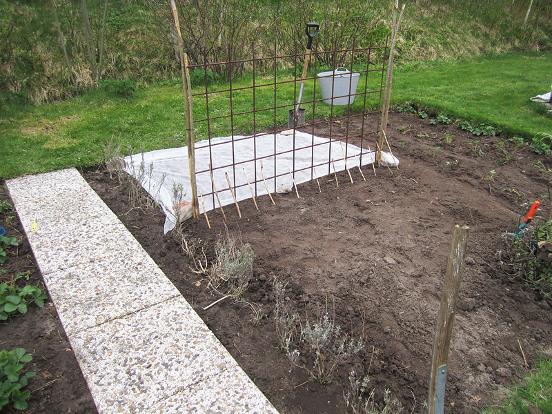 Helene fick en snilleblixt och återanvände lite överbliven armeringsmatta som fick bli ett växtstöd i landet.